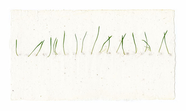 wheat sprouted into handmade paper, pressed and dried