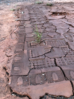 Loose red Oklahoma soil, imprinted with modified shoe soles